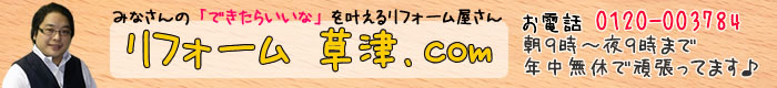 草津.com】は、みなさんの「できたらいいな」を叶えるリフォーム屋さんです。なんでもお気軽にご相談ください♪ |  | |
